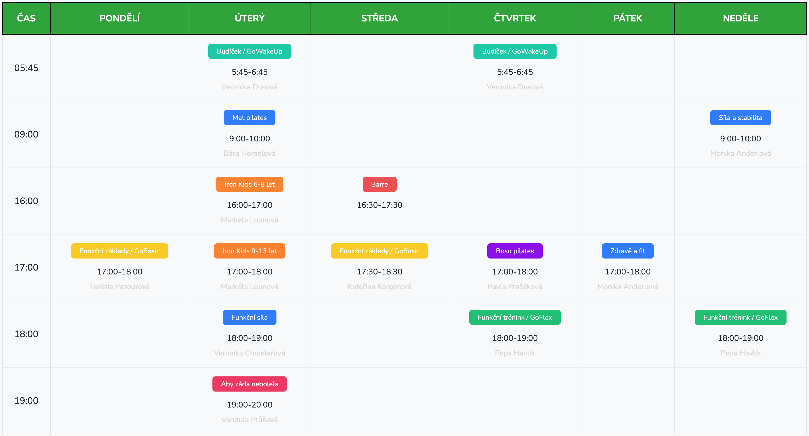 FUNKČNÍ SÍLA je dynamická lekce zaměřená na budování funkční síly celého těla. Při cvičení využíváme různé pomůcky, jako jsou kettlebell, medicinbaly, činky nebo TRX, a pracujeme i s vlastní váhou. Naším cílem je rozvíjet sílu, koordinaci a vytrvalost. Klíčový důraz klademe na techniku a správné provedení každého pohybu, což nejen zvyšuje sílu, ale i stabilitu a mobilitu. FUNKČNÍ SÍLA je ideální volbou pro každého, kdo chce posílit tělo komplexně a zlepšit svůj výkon při každodenních činnostech.